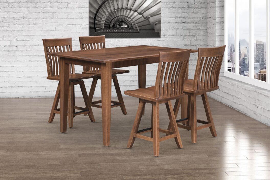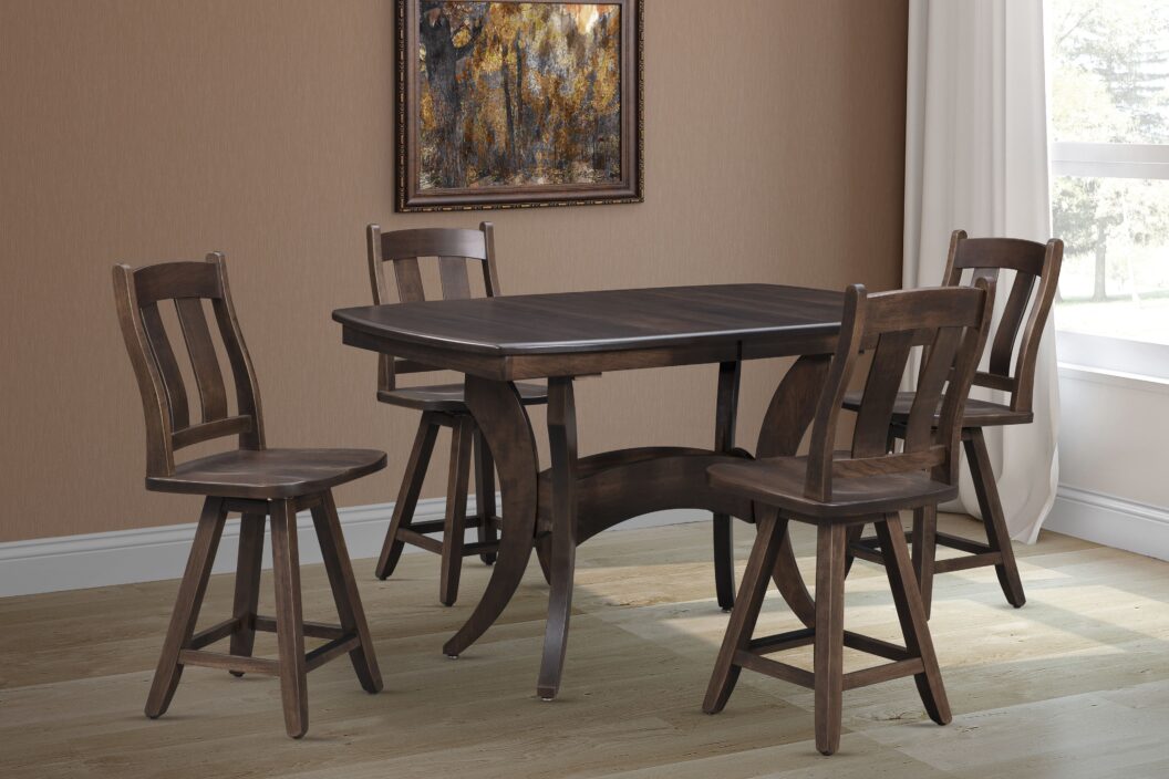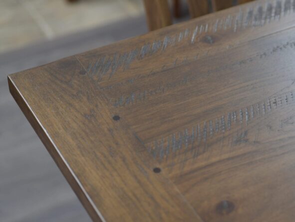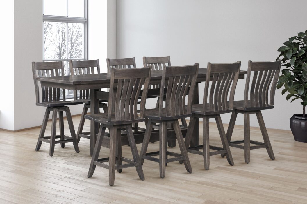 Crafted to endure, the Rocky Mountain High Dining Collection effortlessly combines rustic charm and industrial aesthetics. Its wood trestle base and plank top create a captivating centerpiece for gatherings. Personalize your space with various wood finishes while relishing in the rugged charm of this collection’s timeless design.