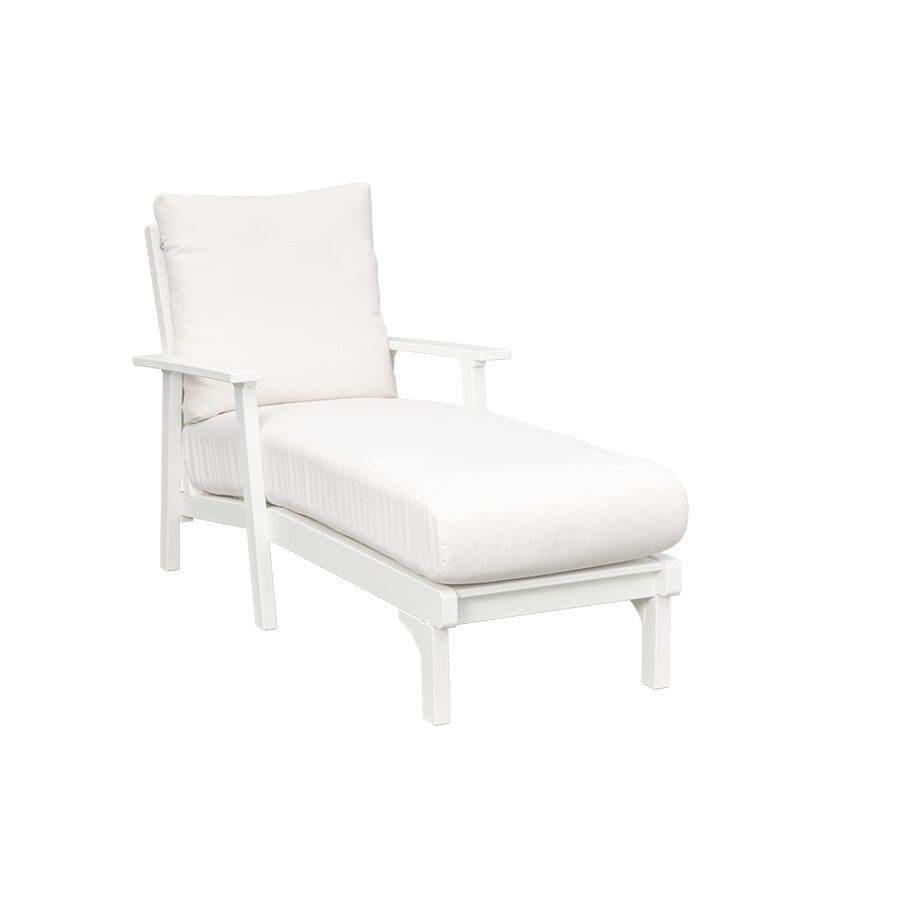 Create your outdoor space by choosing pieces you love and know are artisan-created and upkeep-free. The Simplicity Deep Seating Chaise Lounge is the perfect place to relax and enjoy the outdoors. Also available with only one arm on the left or right, in order to create a piece for an outdoor sectional sofa.