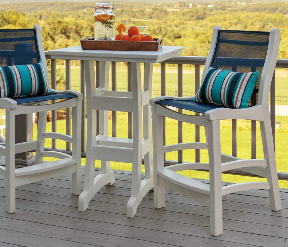 Due to the nature of poly lumber, it has many advantages over wood. Unlike wood, poly lumber will not split, crack or rot, and is not susceptible to insect damage. This durable poly lumber is easily maintained and is a dense material with the average weight of a chair being around 30-50 pounds. This means that even with strong winds you don’t need to worry about your outdoor furniture shifting.