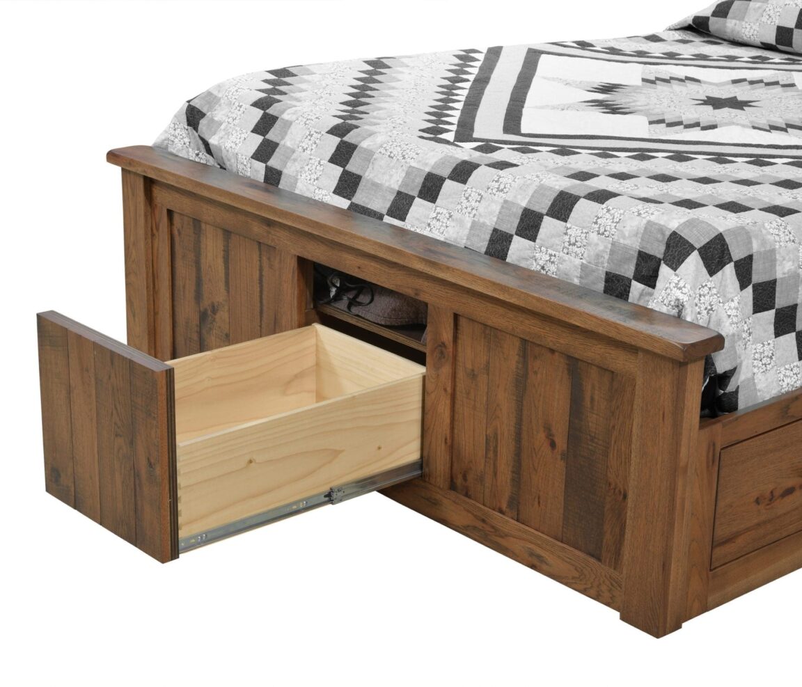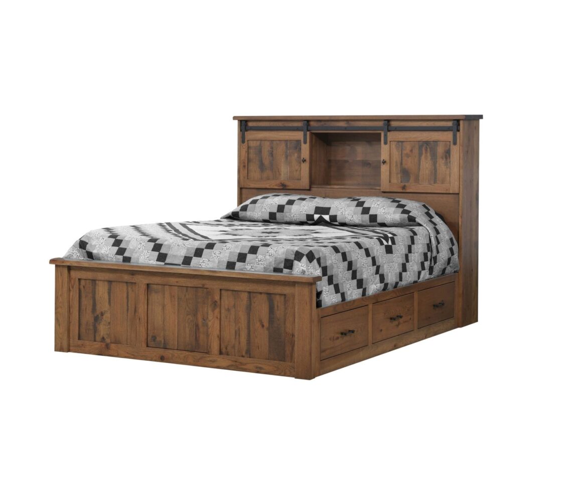 The Barn Floor Top Bedroom Collection is a testament to the exceptional quality of Amish-made furniture. It seamlessly blends the natural textures of wood with the rough-sawn aesthetic, creating a stunningly beautiful and functional set of furniture. Whether you opt for the classic barn-style plank panel bed or the striking Barn Door Bookcase bed, this collection is an excellent choice. Plus, with the popular underbed storage system, which includes a hidden drawer, this set is sure to fulfill all your storage needs. Handcrafted in Holmes County, Ohio, the Barn Floor Top collection is crafted with care to ensure your comfort as you rest. So whether you’re looking to upgrade your space or simply add a piece or two to your existing set, we’re here to help you create the bedroom of your dreams.