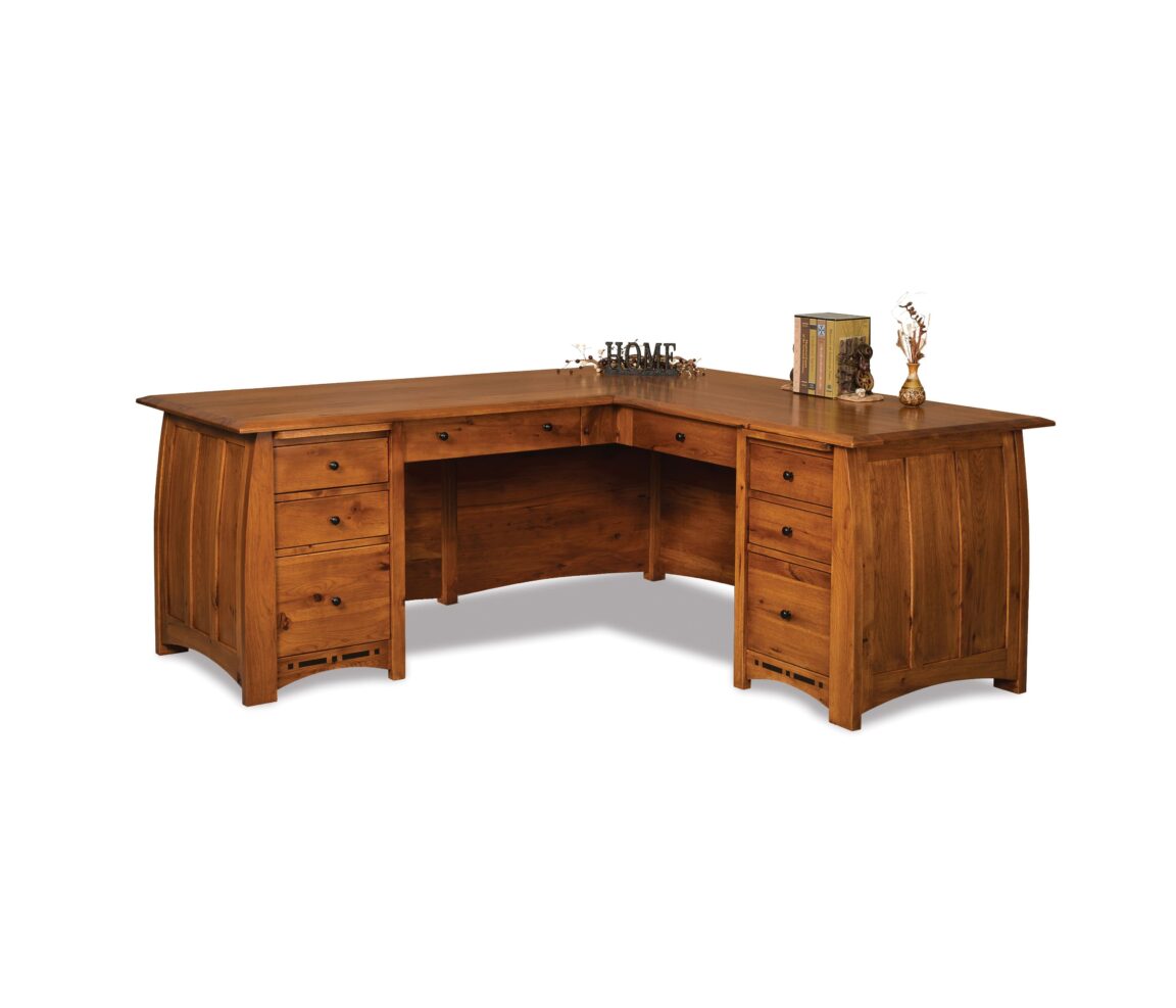 The Boulder Creek collection stands out with its elegant details, including gently curved legs, ebony inlays, and arched skirts. This modern yet timeless design brings a sense of warmth and classic sophistication to any office area. Handcrafted by experienced Amish artisans, Boulder Creek furniture showcases their skilled craftsmanship. Moreover, this collection offers a selection of sustainably harvested hardwoods, allowing you to choose both style and sustainability. This collection blends contemporary design with a touch of classic sophistication, resulting in furniture that not only enhances aesthetics but also resonates with conscientious craftsmanship.