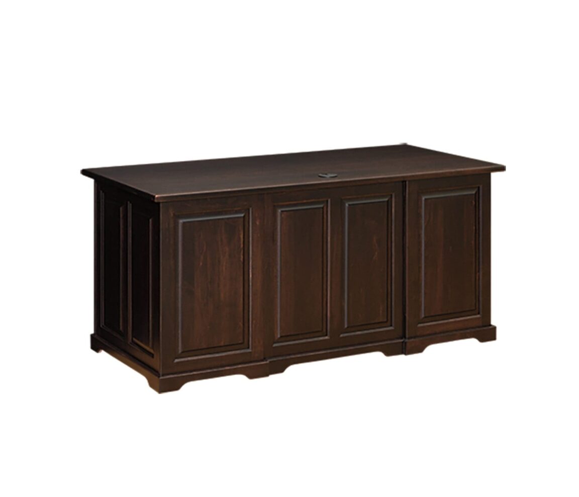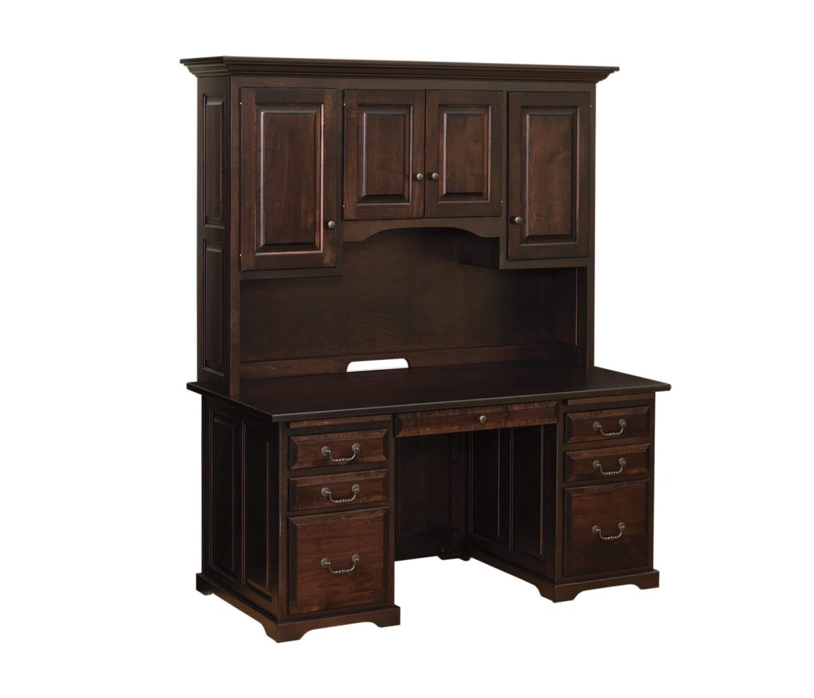 The optional hutch expands your storage options, adding extra height and cabinet space to your desk. Choose from a range of customization options, including wood species and stains, to create a workspace that matches your personal style. The Kingston Collection also features versatile filing cabinets, available in different sizes to suit your organizational needs. With its raised-panel back and exquisite craftsmanship, this collection becomes a focal point in your office.