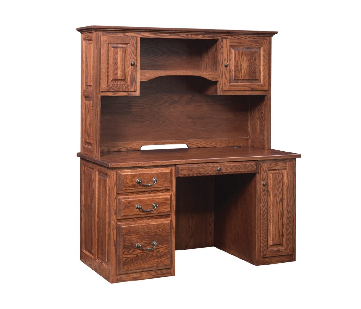 The optional hutch expands your storage options, adding extra height and cabinet space to your desk. Choose from a range of customization options, including wood species and stains, to create a workspace that matches your personal style. The Kingston Collection also features versatile filing cabinets, available in different sizes to suit your organizational needs. With its raised-panel back and exquisite craftsmanship, this collection becomes a focal point in your office.