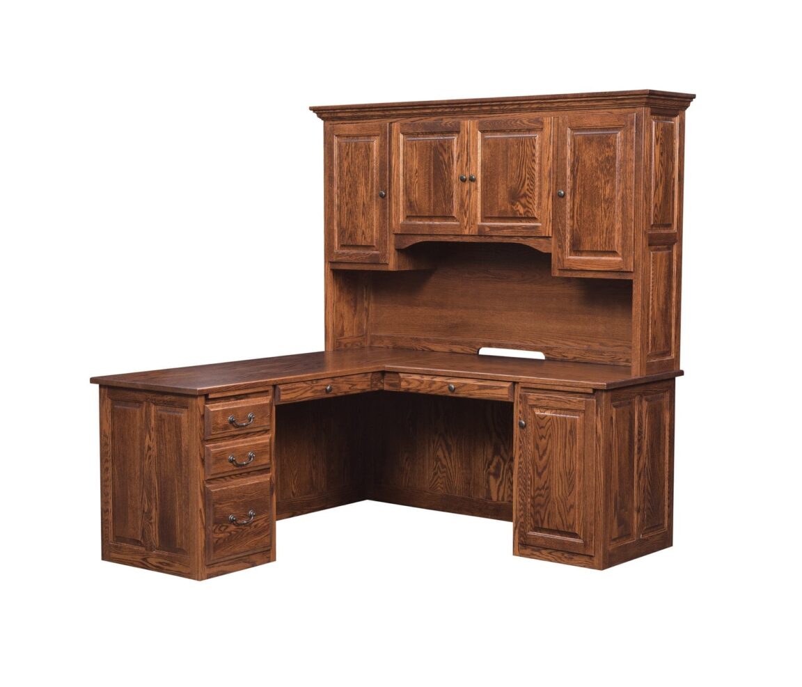 The optional hutch expands your storage options, adding extra height and cabinet space to your desk. Choose from a range of customization options, including wood species and stains, to create a workspace that matches your personal style. The Kingston Collection also features versatile filing cabinets, available in different sizes to suit your organizational needs. With its raised-panel back and exquisite craftsmanship, this collection becomes a focal point in your office.