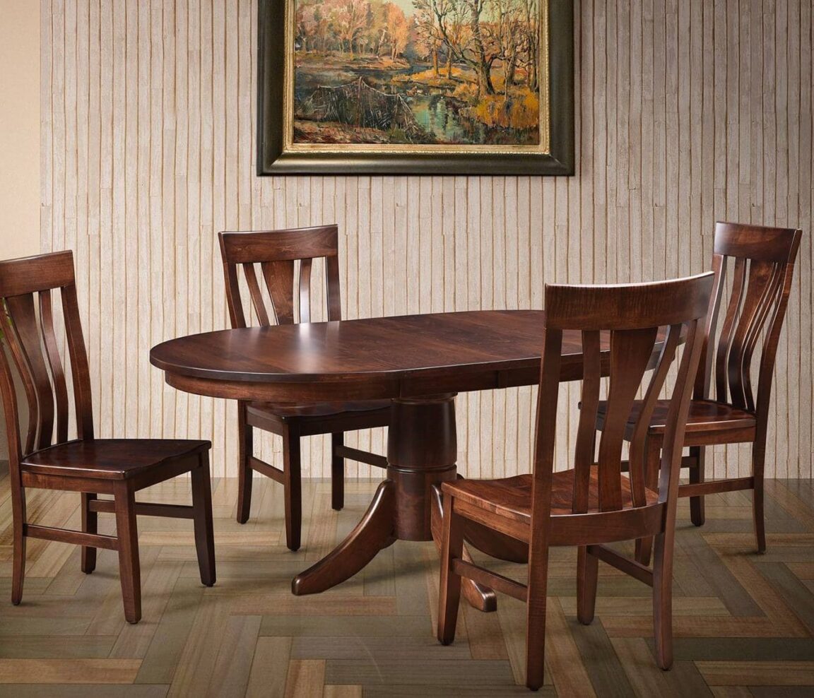 The Miami Dining Collection captures the essence of contemporary elegance, offering a perfect blend of style and functionality. The centerpiece of the collection is a sleek and simple single pedestal table. Available in a round shape, it can be extended to an oval shape to accommodate larger gatherings and provide versatility for any occasion.